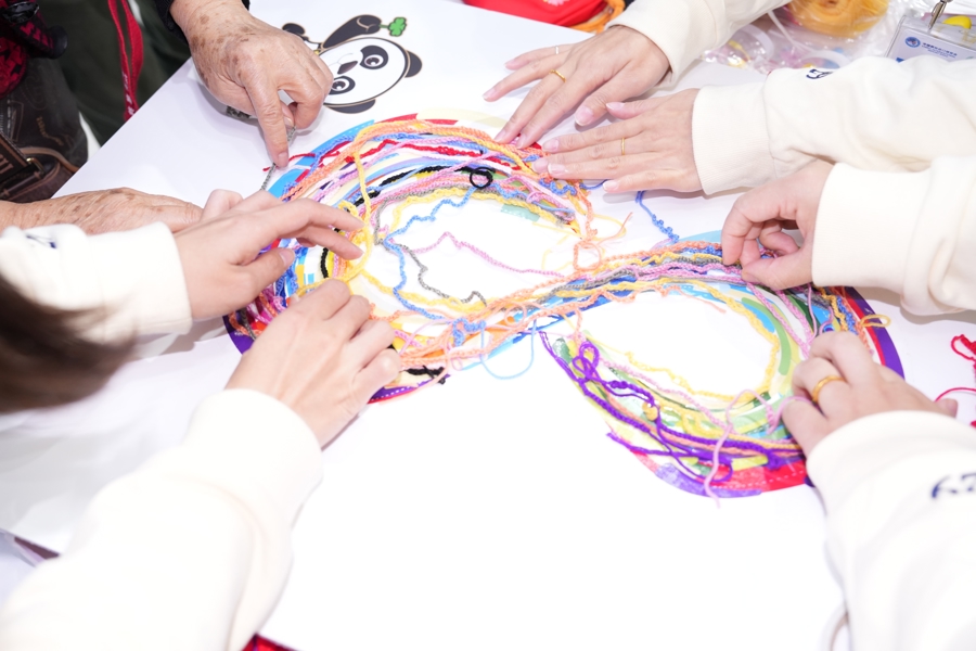 活动现场还为所有参与者准备了“恒爱毛线”和“恒爱亲巧包”万宝配资,在海派绒线编结上海市级传承人励美丽及恒源祥非遗工作室工艺师的指导下,共同学习基础编织技法“辫子针”,并将亲手钩织的绒线段,粘贴于展板上的“8”字造型。当“8”字横置,巧妙化为数学中的无限符号“∞”,深刻点题“恒爱无限”——既寓意进博会八载历程,更昭示公益爱心永无止境、循环不息。